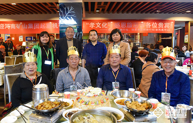 今天,恰好有四位老人生日,公司特意安排了生日蛋糕和長壽面。