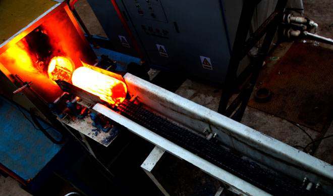 該智能流水線將鍛壓和碾壓軋制工藝融為一體,從毛坯下料、上料、加熱、初鍛、碾壓成型到成品輸出,實現(xiàn)了自動化流水作業(yè)。它是我公司《起重機車輪碾壓成型新工藝裝備》、《起重機車輪鍛壓用新型加熱工藝裝備》等多項專利技術(shù)成果轉(zhuǎn)化為生產(chǎn)力的標志。