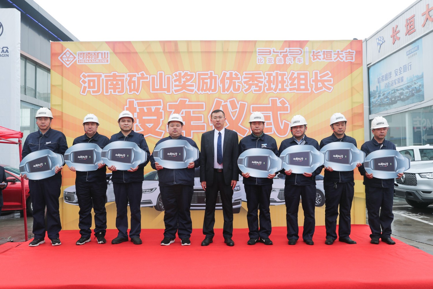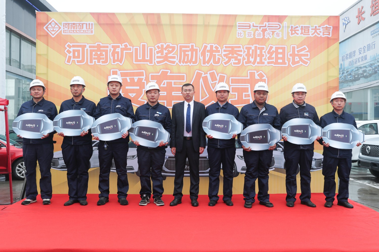 3月11日,河南礦山獎勵**班組長授車儀式在長垣大地亞飛汽車城內(nèi)隆重舉行。公司24名一線**員工得以重獎,每人獲得一輛純電動比亞迪全新秦EV。據(jù)悉,該批車市場總價值420余萬元。